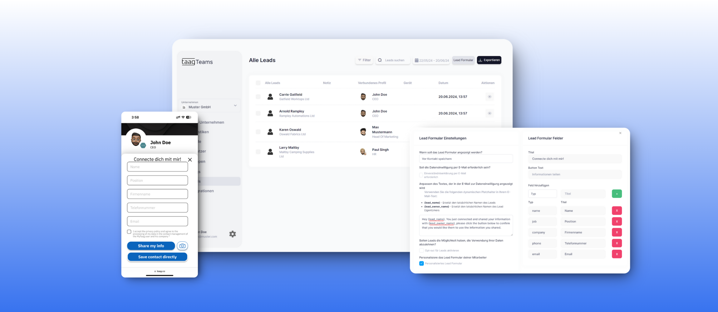 Das personalisierte Leadformular wird Ihrem gegenüber nach dem Scan Ihrer Karte angezeit.