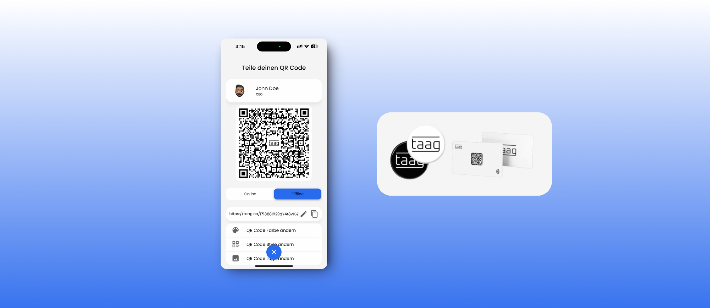 Teilen Sie ihre Kontaktdaten über Ihren Taag durch einfaches Ranhalten an ein NFC fähiges Smartphone.